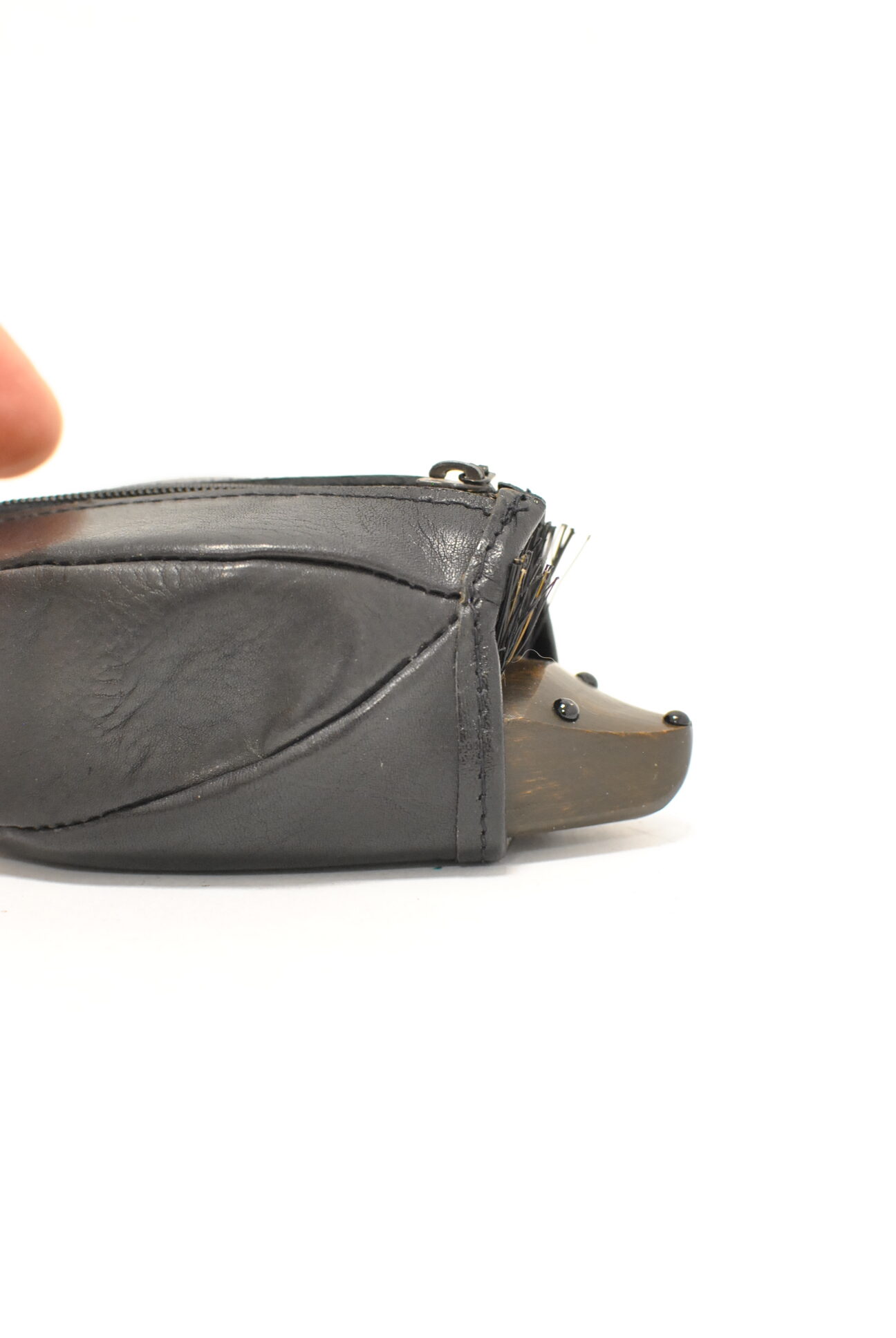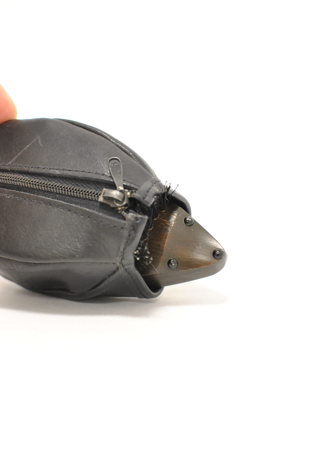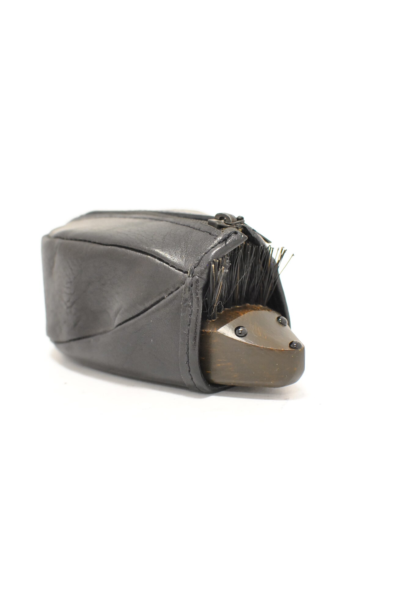 Descirere : perie naturala din par natural si lemn natural , huse de piele